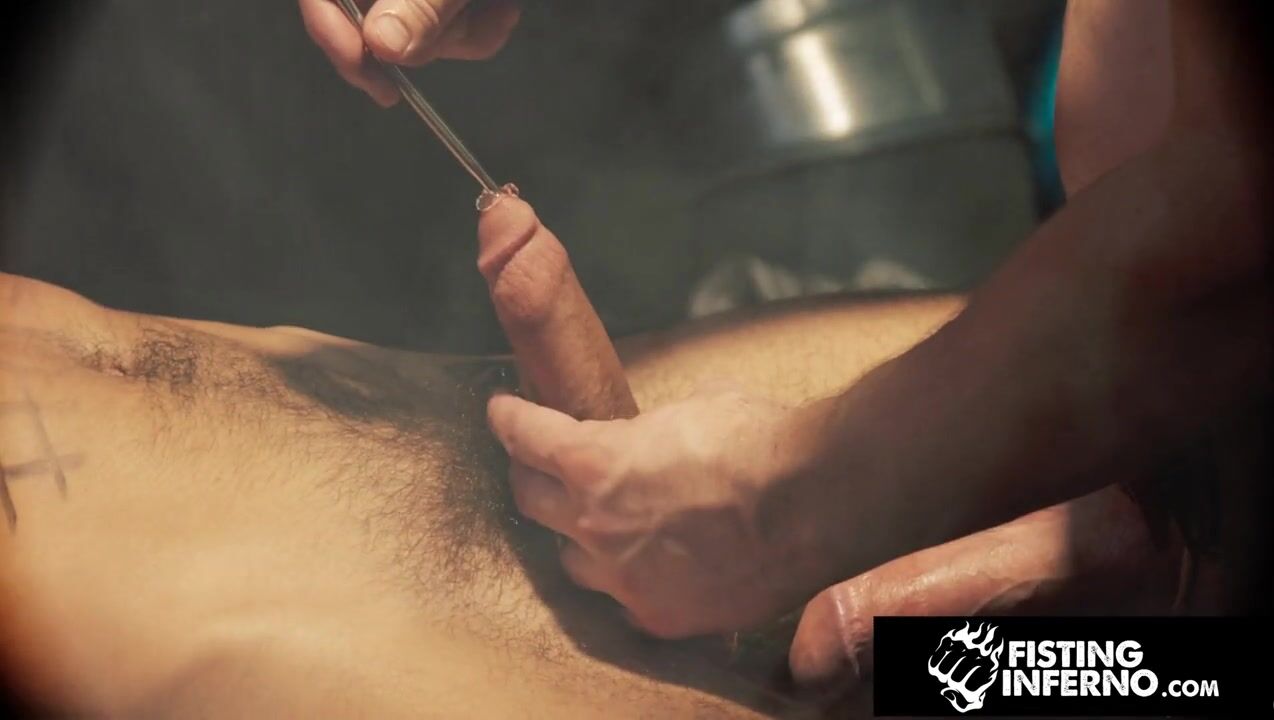 Liam Skye lays back as dominating Devin Franco grabs hold of Liam's cock and works a steel sounding rod deep into his dick. while Tristan Hunter slides his cock in Liam's mouth.