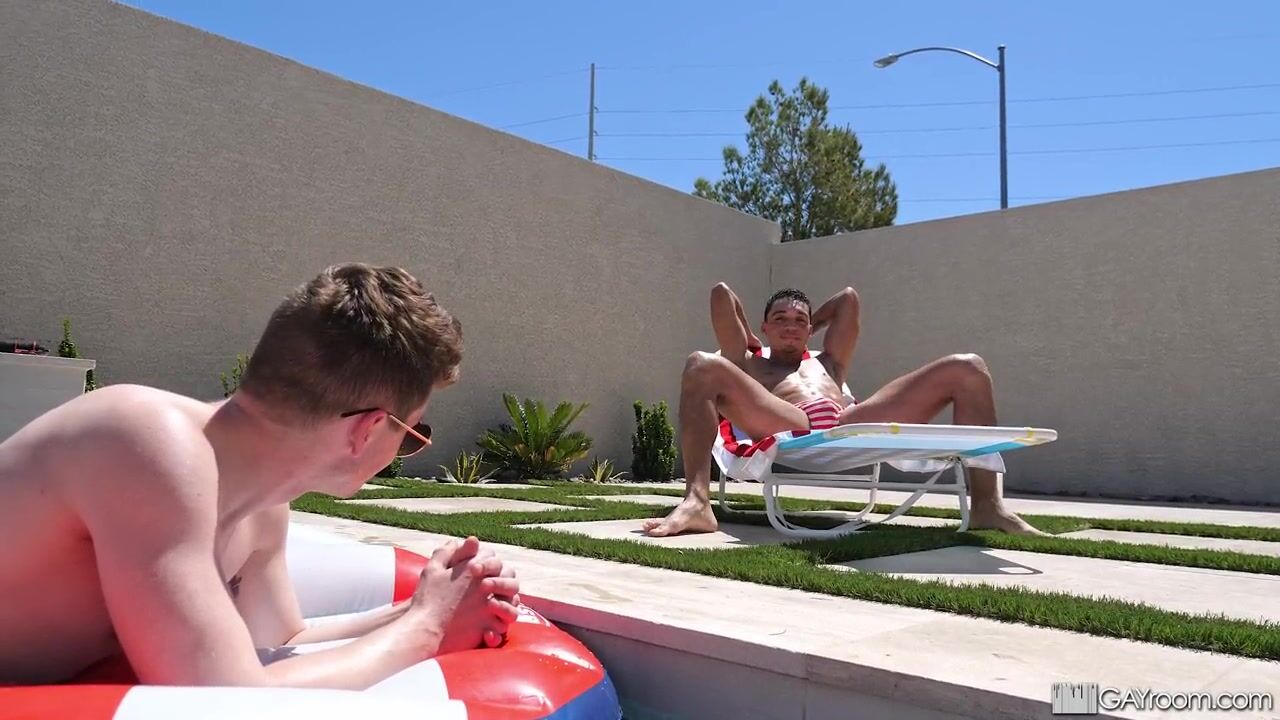 Man Poolside Rub Down Sex With Two Hunks