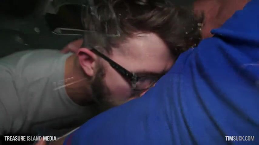 Sucking dad's cock in the garage
