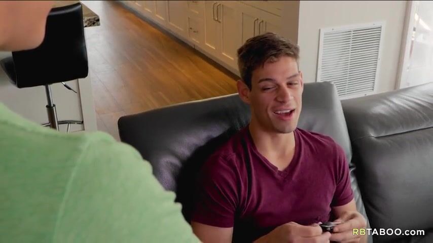 Michael takes out his cock and Andy begins to suck. Michael soon takes off his clothing and relaxes on the couch with Andy still sucking.