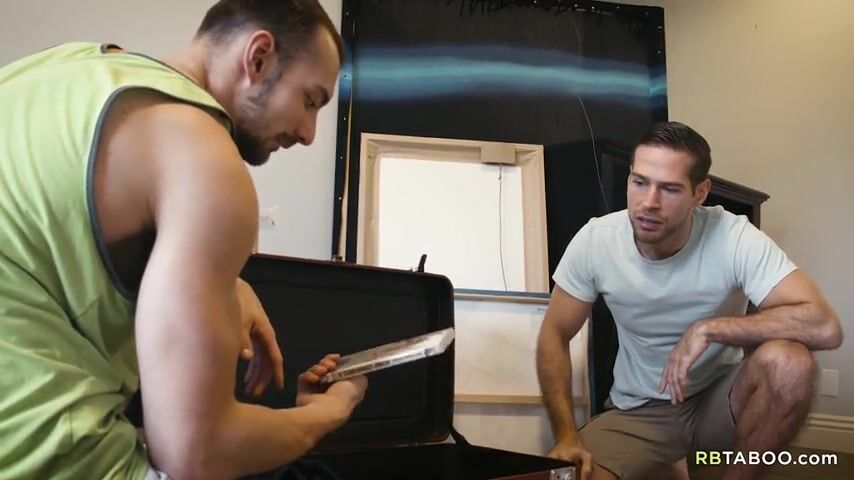 Hot step-brothers Johnny B and David Skylar are helping move boxes into Dad's place when they find something they weren't expecting... a box of gay porn, toys...