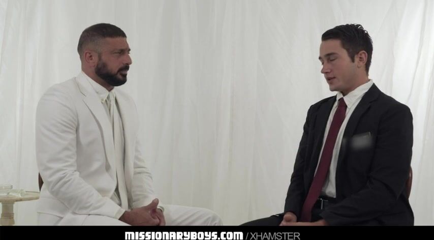 When young Elder Anderson is faced with an invasive Interview conducted by the muscular Bishop Napoli, he is surprised when the older man kneels down to suck his girthy dick.