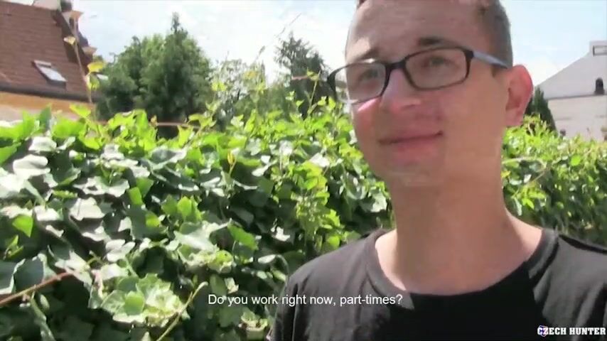 CZECH HUNTER 448 - Twink With Trendy Glasses Gets His Balls Played With