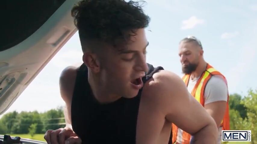 MEN - Trevor Brooks Pretends To Have A Car Trouble Then Stops In Front Of Chuck Conrad And Bends Over To Be Noticed