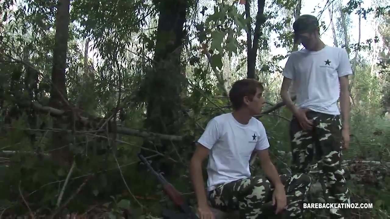 Evan is out on patrol when he finds Florian taking a break and nursing his sore feet. He sits next to him and soon Florian is grabbing his package and making it clear he would like to play. He pulls his big uncut cock out and tells Evan to suck on it. After giving Florian head, Evan enjoys a blowjob from his friend. With both Latin boys rock hard, and pants around their ankles, Florian makes it clear he wants to fuck Evan. It isn't long before Evan is bent over and taking that big cock up his ass raw. After giving Evan a good long barebacking from behind, Florian cums on his ass. Then he gets on his knees and lets Evan shoot a load into his mouth.