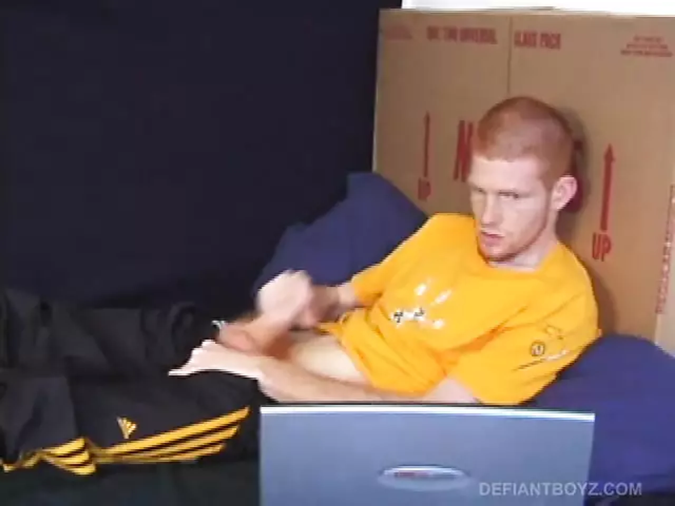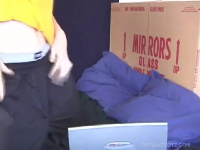 In this hot solo scene, young Tristian goes into the bathroom to beat off while watching some porn on a laptop. After a nice long stroking, he opens that release valve and fires all over the mirror and counter top. Tristian then picks up the camera so we can get a close up look at the splattered cum on the mirror as it runs down the glass.