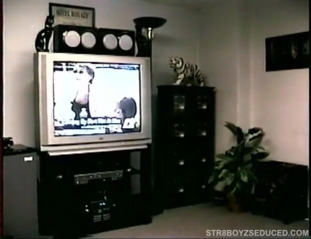 Straight boy Dino peels off his shirt to reveal his awesome body. He unzips his jeans and pulls out his growing cock. Dino strokes it until its rock hard and then stands and strips for the camera. Vinnie gets down between his beautiful hairy legs and takes his cock in his mouth, as he massages Dino's balls. It doesn't take long for the first barrage of cum to hit Vinnie's lips.