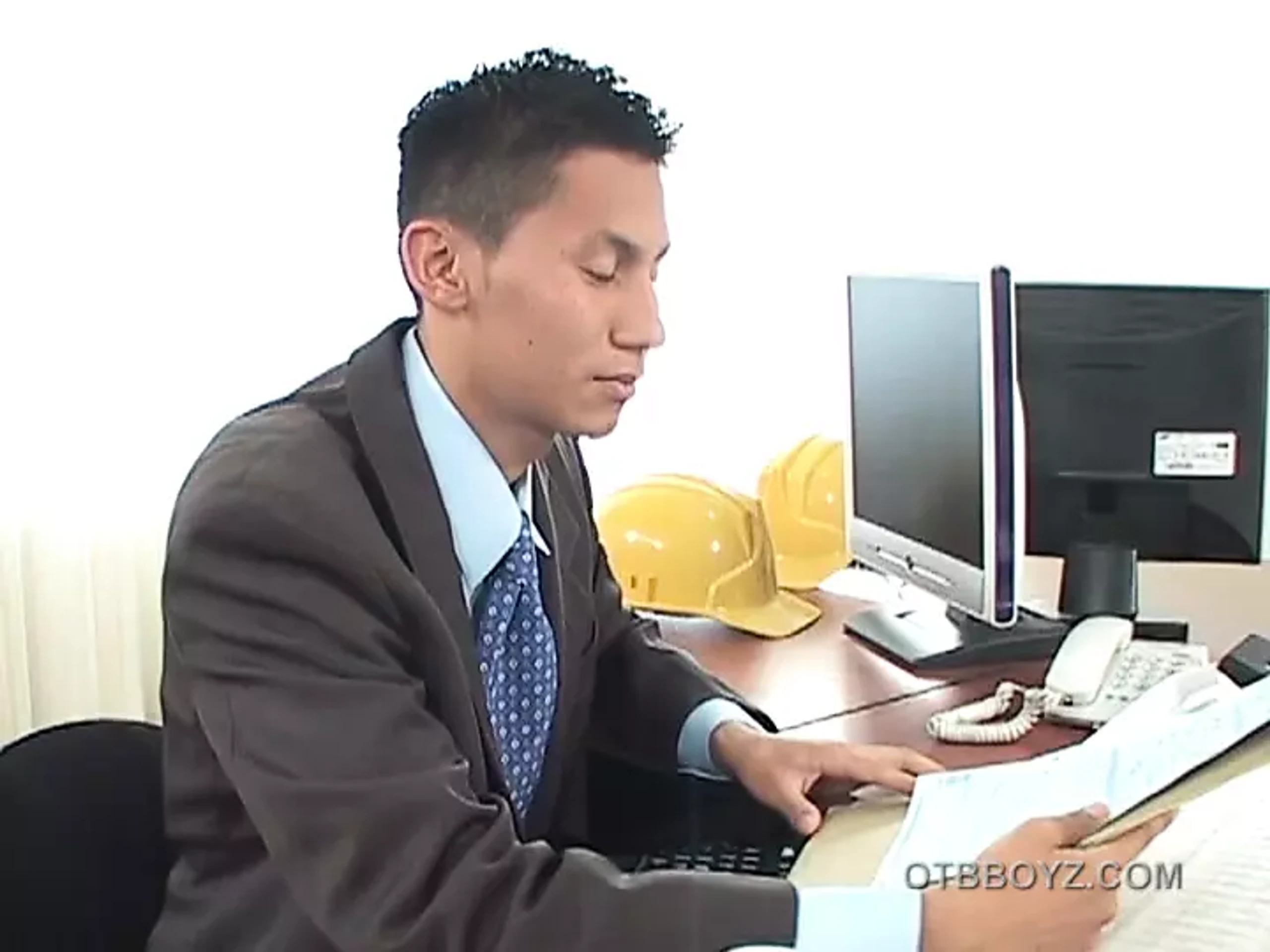 Latin twink Alfredo is busy at his desk when horny bottom Eduardo makes his move on him. By the time these two are stripped to their underwear, both are sporting big boners and Alfredo soon has Eduardo's stiff uncut cock in his mouth. In turn, Eduardo gives his top's big dick the attention it deserves. Then he offers up his skinny butt and Alfredo slides his big meat in. Eduardo ends up legs in the air, pumping out a cum gusher, as Alfredo pounds his Latin twink ass. Finally, Alfredo pulls out and shoots his load onto his well fucked bottom.