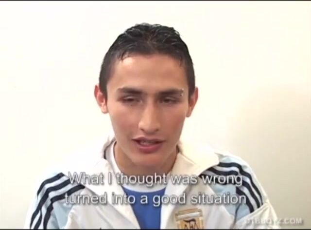 Junior asks his friend Angel to come over and help with a computer problem. While fixing it, Angel notices gay porn photos. At first Junior tries to deny he was looking at gay porn, thinking his friend is straight. A well placed hand lets Junior know he has nothing to worry about and soon the two are kissing and stripping. The boys suck dick until Junior is rock hard and ready to bareback fuck his friend's Latin ass. Angel takes that big raw uncut cock in several positions before getting splattered by both of their cum loads.