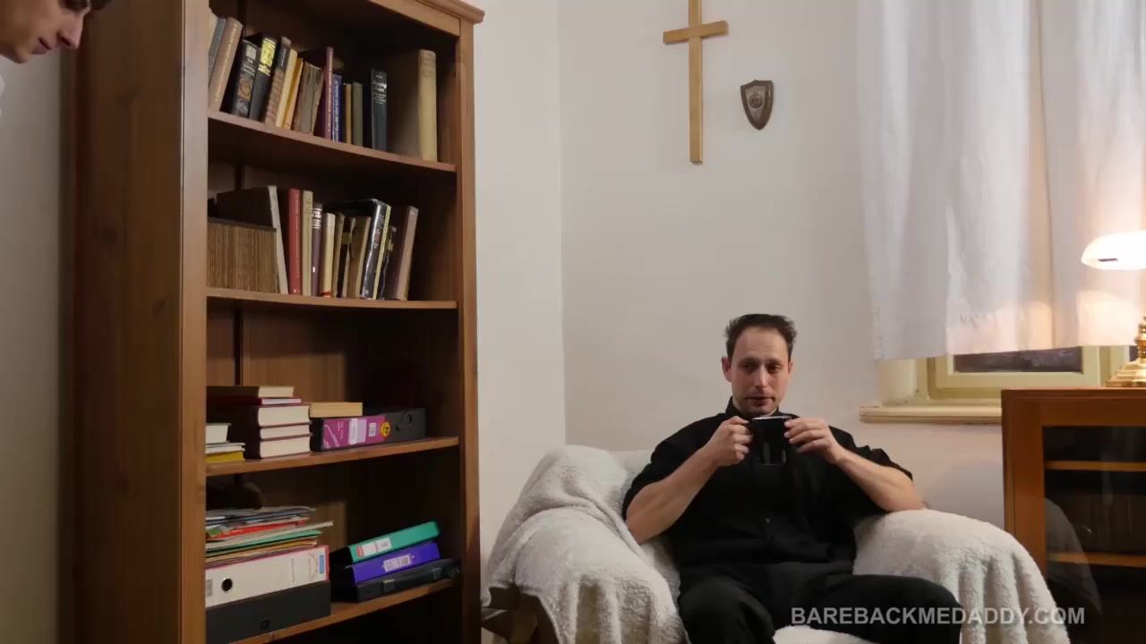 Young Jesse has the hots for his older priest, Victor, so he asks him for some advice and they go to the nearby church to talk. Unaware of Jesse's real agenda, he soon discovers the truth when Jesse hops onto his lap and starts removing his clothes. Soon the two are kissing passionately, as Victor gives into temptation and quickly has his cock in the naked boy's mouth. Jesse then climbs onto Victor's cock and rides it bareback, enjoying every raw inch up his tight little ass. Victor follows by bending the young man over and doggie fucking his young butt. Finally, Victor flips Jesse onto his back and pounds him hard and deep, until the young bottom cums all over his smooth abs. Then Victor finishes himself off by shooting onto Jesse's freshly fucked hole.