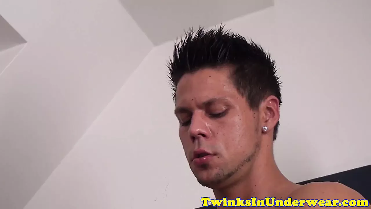 Rimmed twink tastes jizz during a massage after stroking hard cock