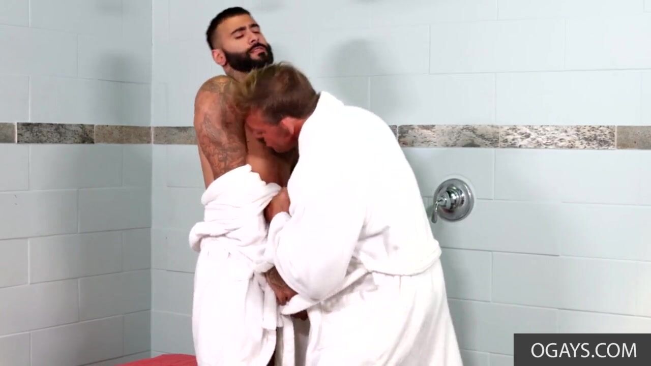 After a good, hard workout, Tristan Brazer and Rikk York decide to rinse down in the shower, but when the guys find it empty, Tristan looks for a little post-workout play.