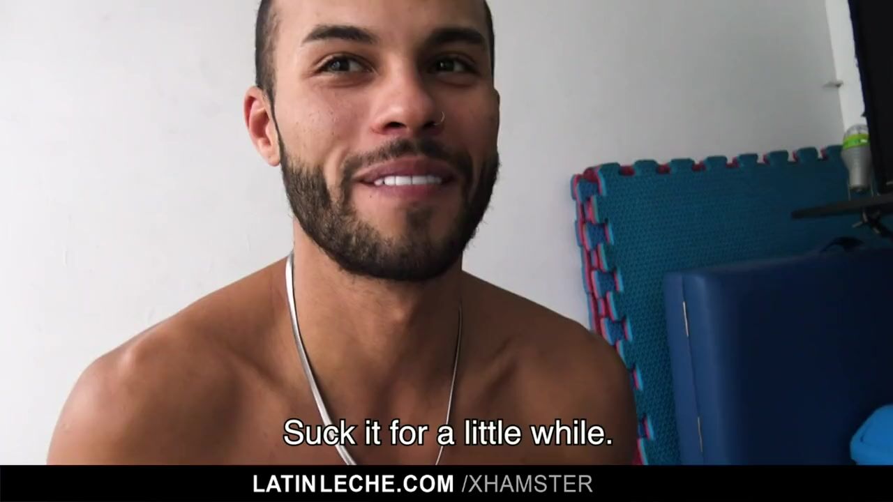 An edgy Latino boy wants a taste of our cameraman’s cock while he enjoys a sensual sports massage. He licks our trickster’s uncut penis and turns around to take his enormous boner in his tight hole.