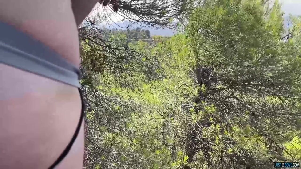 Naughty twink Sam Carter masturbates solo and cums outdoors