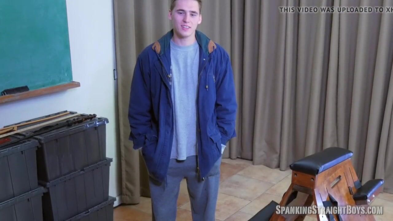 Teenage straight boy Jordan, age 19, is strapped down to a spanking bench and spanked hard by a gay man.