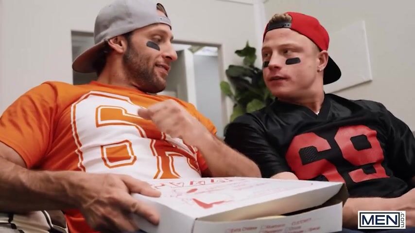 MEN - Dom King Sticks His Cock Through The Pizza Box For Some Blowjob Action With Logan Aarons