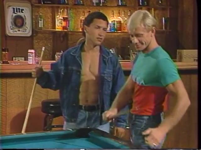 Homo guys blowing each other on a pool table in a bar