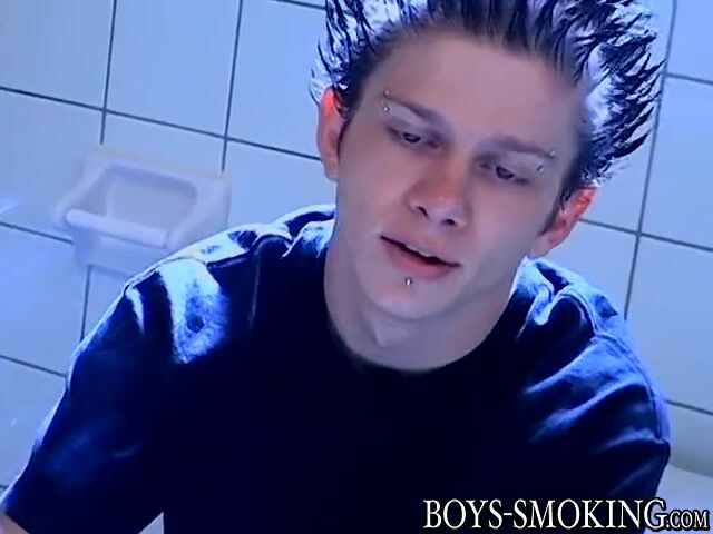 Stud gay Ian Madrox lights up cigar and tugs cock with hand