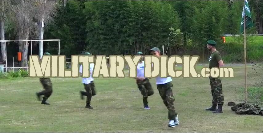 Horny Soldier Shows Two Young Friends Some Exercises