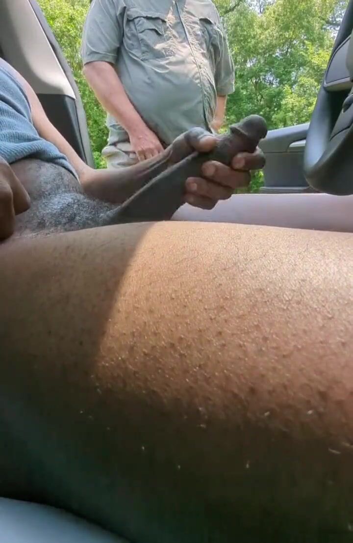 A cruising stranger caught me stroking and decided to stroke his big white cock too. He stroked mine and couldnt resist sucking it we both blew a load it was risky but pretty hott full video on my OF