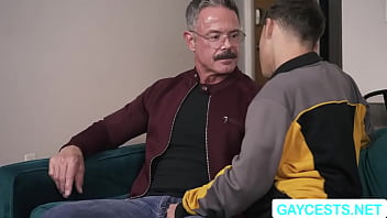 Twink teen Hunter Scott and his stepdad are on the couch kissing each other passionately.After that,he lets his stepdad get naked and he then throats his hard big cock again and again until he already cum.