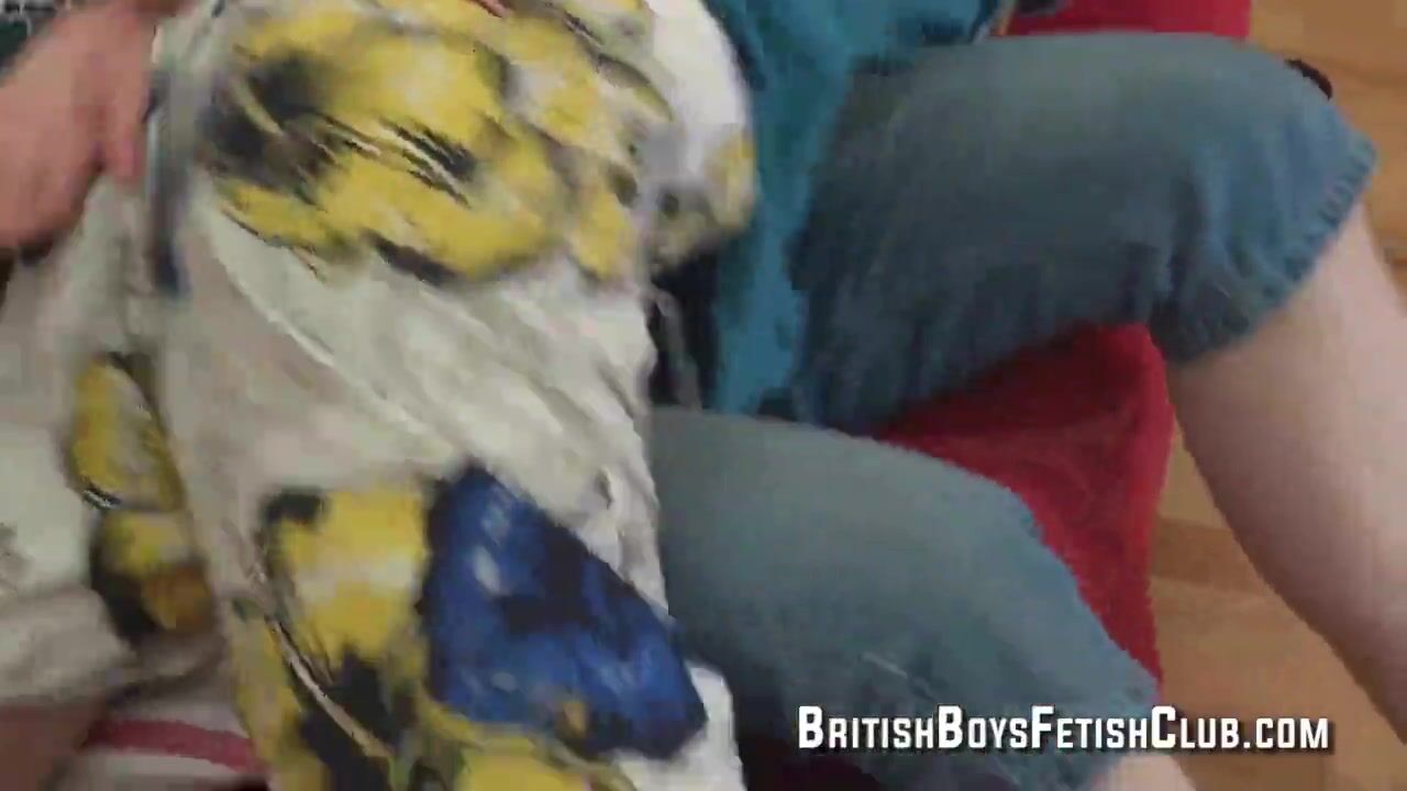 The mop-haired lad is thrashing round wildly as Pat spanks him hard. Ben is struggling as Pat strips his underwear down and continues spanking his tight, bare ass.