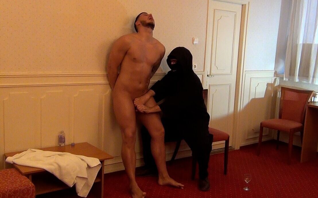 Johnny, the young athlete, refused the sperm bank's request, so they sent the masked man to get the guy's sperm.