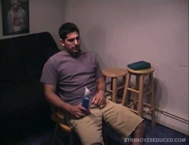 Cory hasn't gotten off in a few days so he drops in for a servicing. I pull off his shorts and start to blow him, as he works the porn video remote control and soon this horny straight boy is explodin