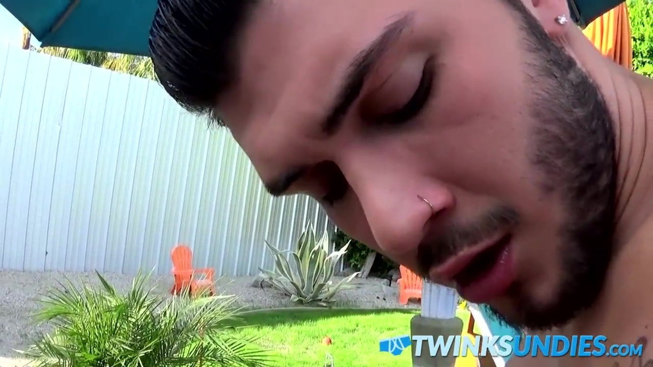Bearded twinks in undies Justin Dean jerks and jizz outdoor