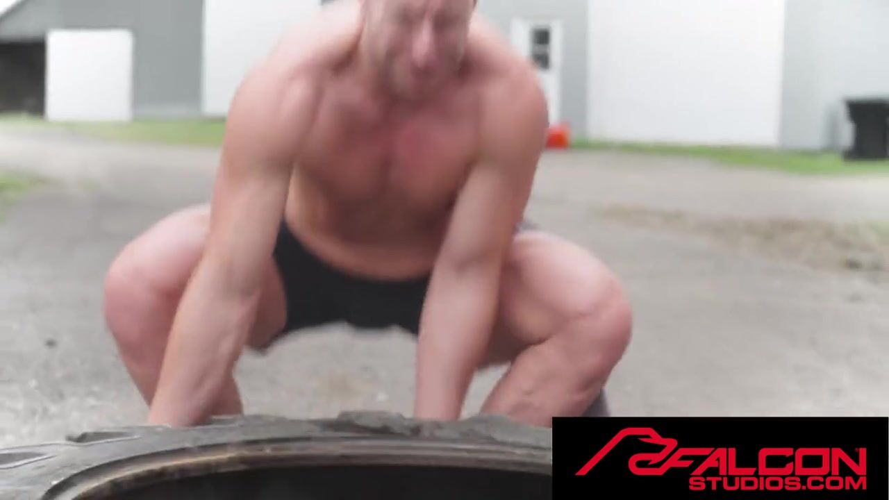 Hot Jock Takes Tractor Tire Challenge And Barebacks Hunk Ass