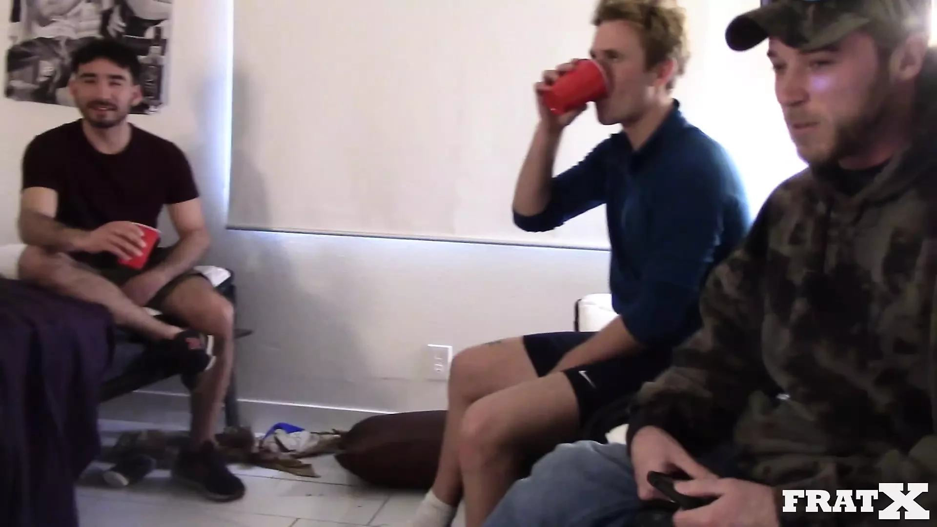 Last time I checked, our new pledge was doing his duties keeping the studs of the frat ready for the next game. Not only does he clean our laundry, be when we need to wind down, he’ll clean our cocks too.