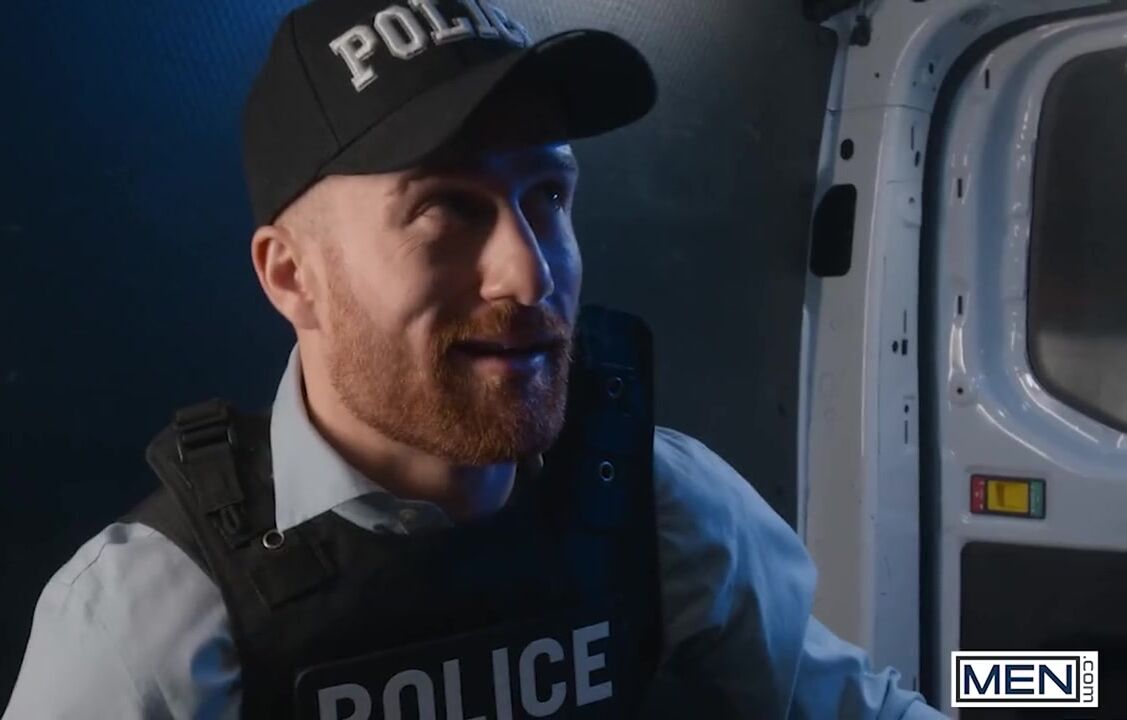 Bearded Officer Olivier Robert Lets Malik Delgaty Pound His Eager Ass & Give Him A Facial - MEN