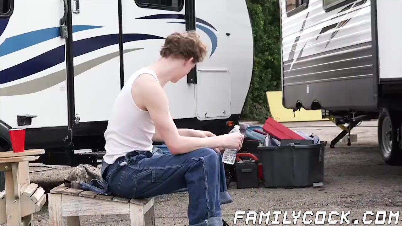 Bearded and tattooed stepdad is going balls deep raw inside his young lover before cumming in his ass.