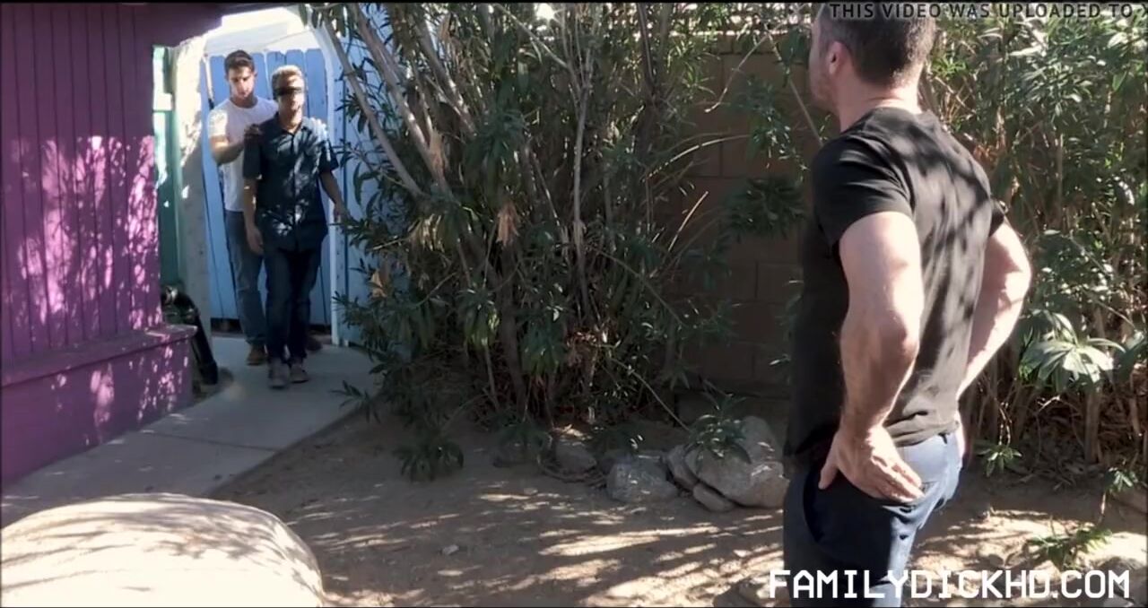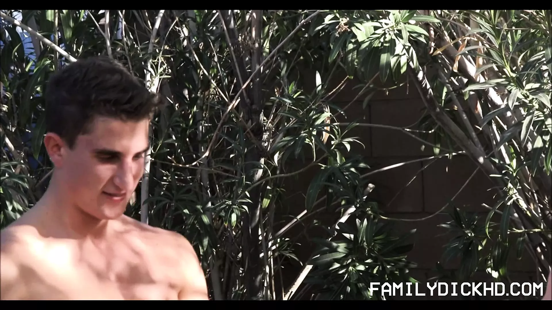 Jock stepbrother takes his twink stepbrother to see thier stepdad and have a threeosme outdoors.