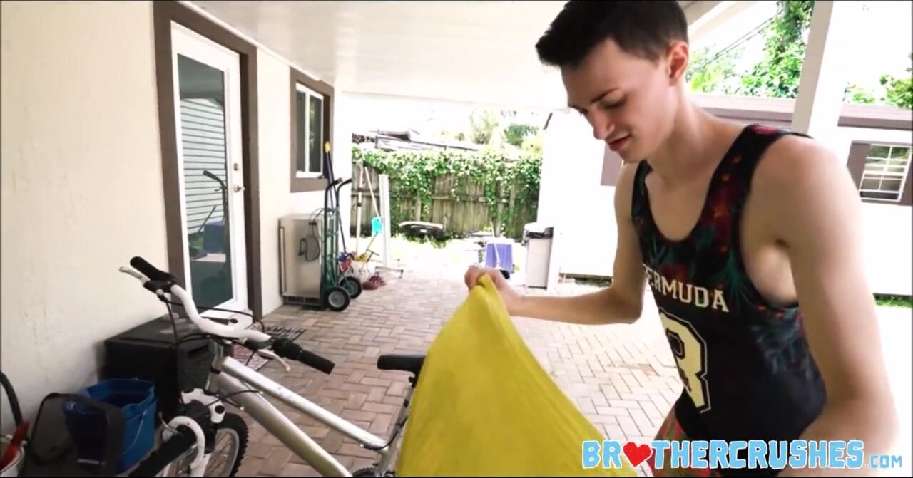 Twink step brother was acting like he couldn't ride a bike & needed his step brothers help. He just wanted him to touch his ass while he pushed him. Both step brothers fuck out back on the back patio.