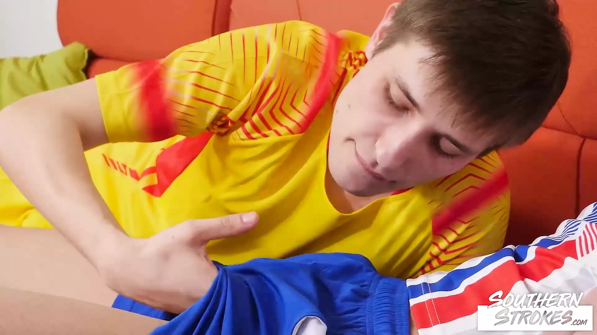 Cute twink Evan Novak had no problem holding back and soon was nuts deep in Carlos Costa tight hole as they fucked on the couch.