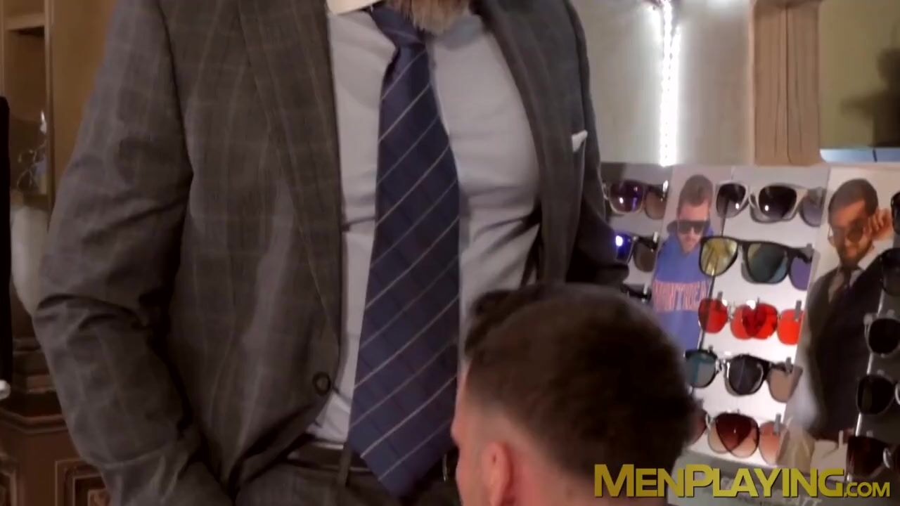 Jock in a suit and tie slobbers on a stiff schlong before taking it balls deep in his tight ass