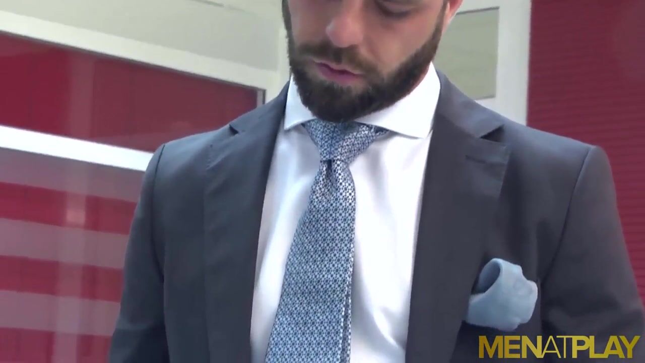 Handsome businessman in a suit Hector De Silva seduces his colleague Sebastian Reiss into fucking him in his tight asshole after making out!