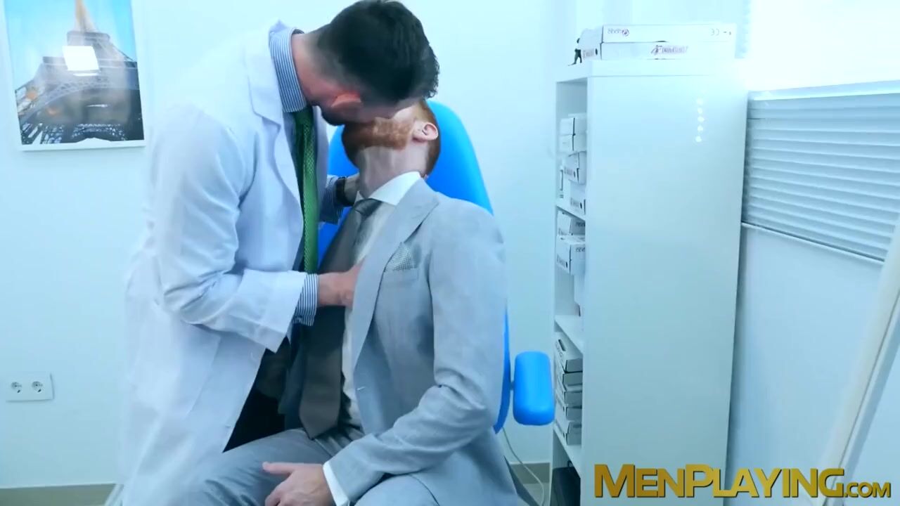 Muscle ginger businessman Leander sucks off hunk doctor Franky Fox and bangs him doggystyle hardcore in hospital for medical favor.