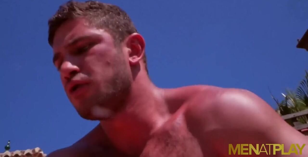 Muscular and dominant hunk Dato Foland pushes suited businessmen Gabriel Phoenix into the pool and uses the situation to make him naked!