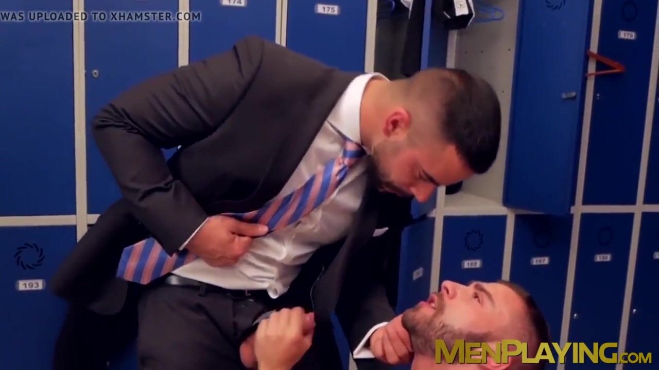 Elegant businessman meets his coworker in the locker room, and things get heated to the point of anal fuck fest.