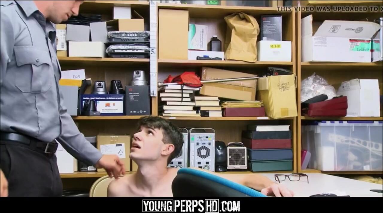 Skinny young straight boy twink was caught on cam graffiting store property. Agrees to have sex with gay guard for his freedom after learning he used to fuck the gay officers sister.