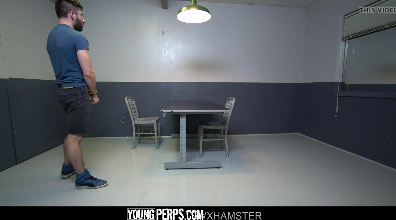 A hunky suspect is brought in for questioning at the local precinct, and the Officer on duty has some pervy ideas on how to punish the perp. He feeds the suspect his engorged erection...
