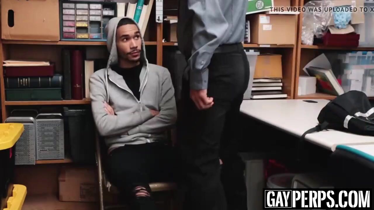 Skinny black thief bareback screwed by officer. This boy perpetrator isn't very pleased to have that huge dick inside his ass, but it beats jail time.