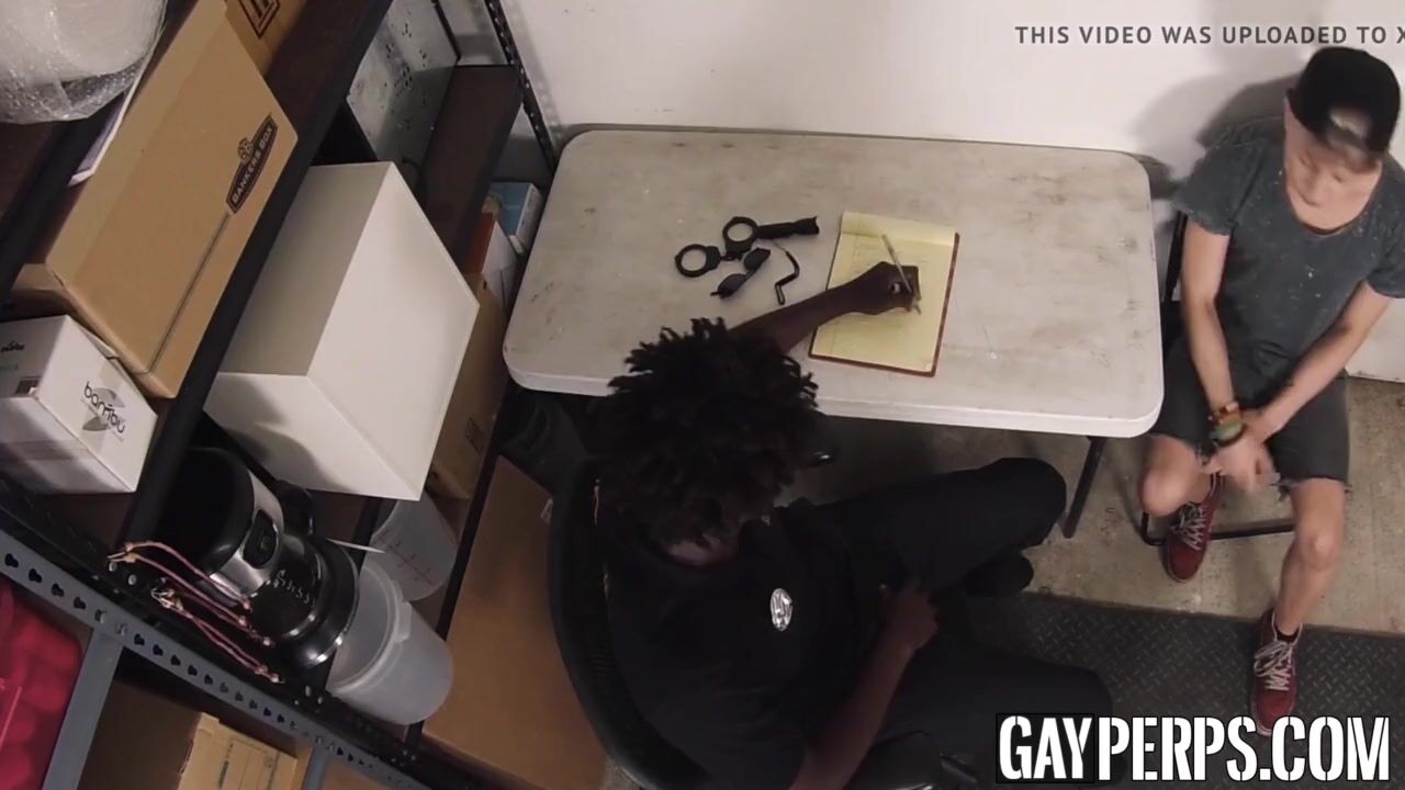 Ebony security officer catches a twink shoplifting and drills his ass raw after fucking his mouth.
