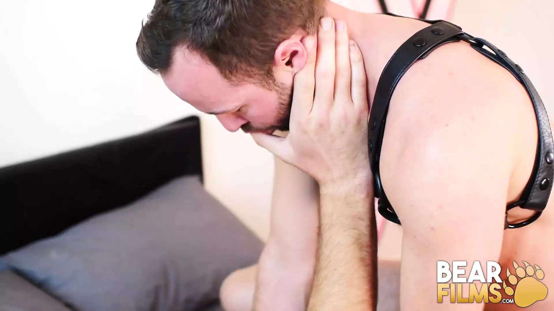 Dominant hunk in leather Parker Logan has his fat dick deepthroated by hairy bottom Alex Hawk, who bends over for deep bareback!