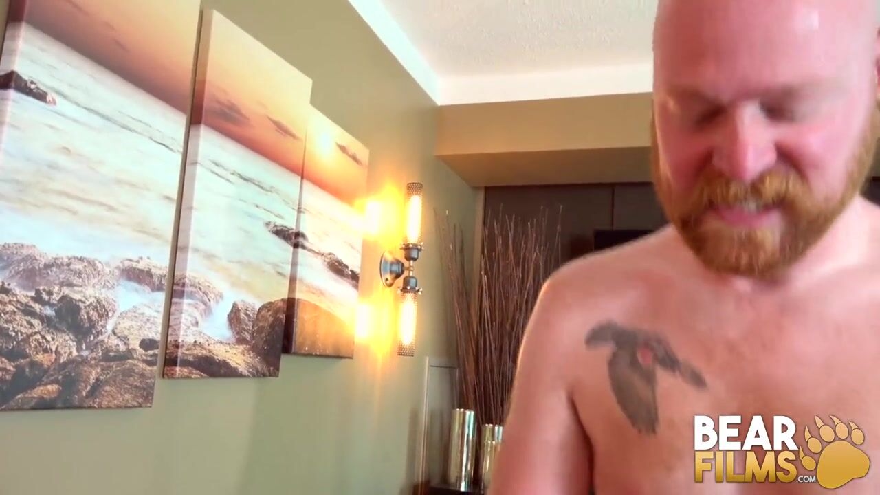 Tattooed hairy bear Marc Angelo got his asshole licked by a young ginger gay Logan Stanley who breeds him like no man before!