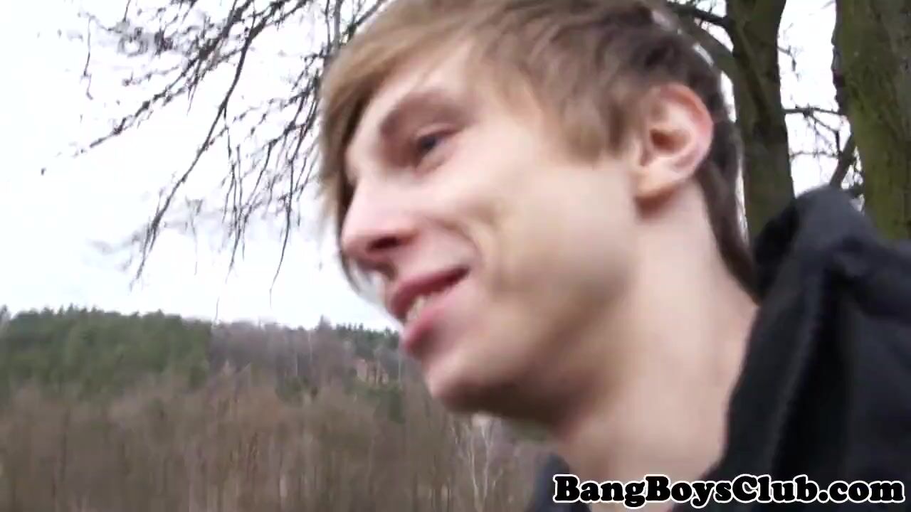 Amateur euro barebacked outdoors in park before cumshot over tight ass