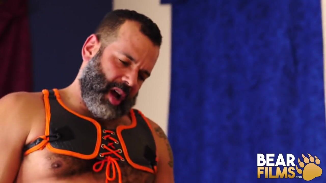 Bearded daddy Sterling Johnson stuffs his massive dick into Chip Youngs mouth, before barebacking him hardcore!