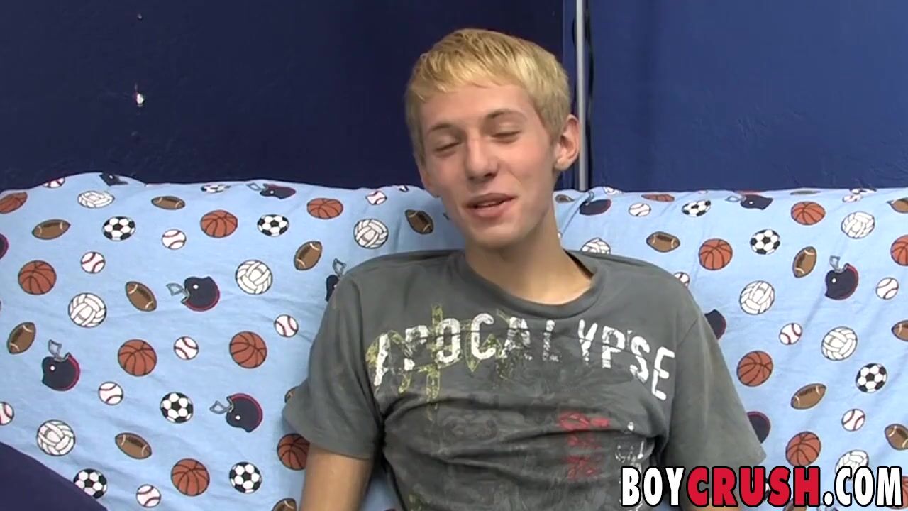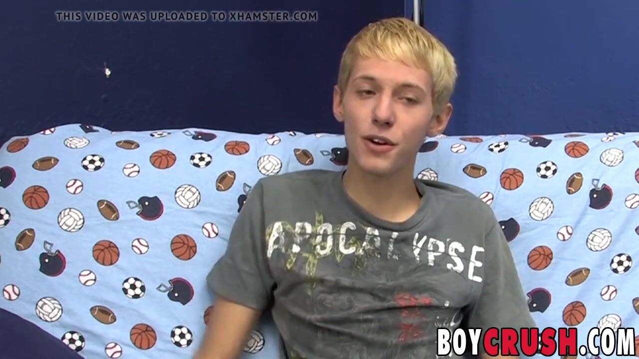 Interviewed blonde twink Kenny Monroe wanking off and cums